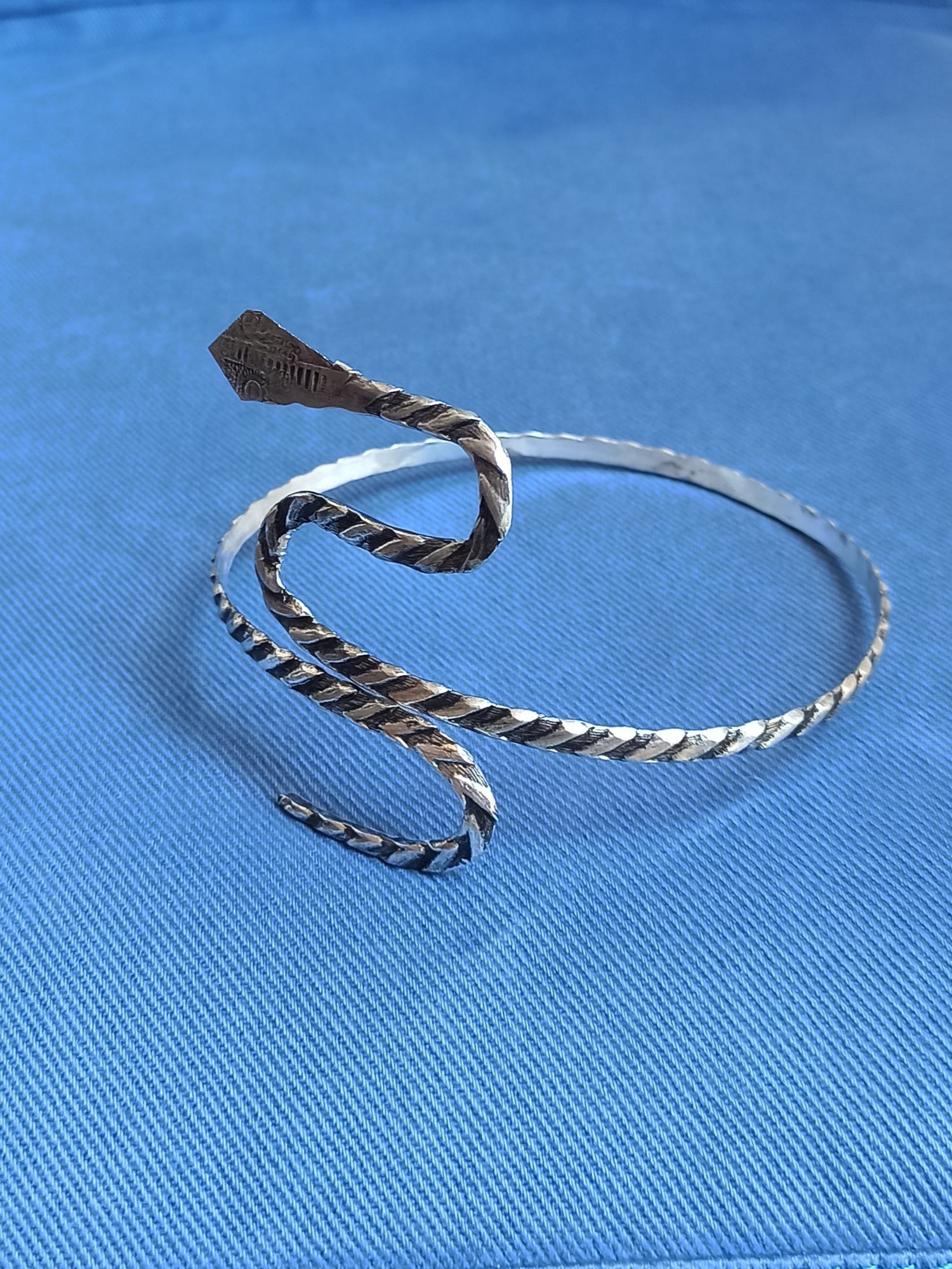 Bracciale rigido in lega di metallo argentata. Regolabile.