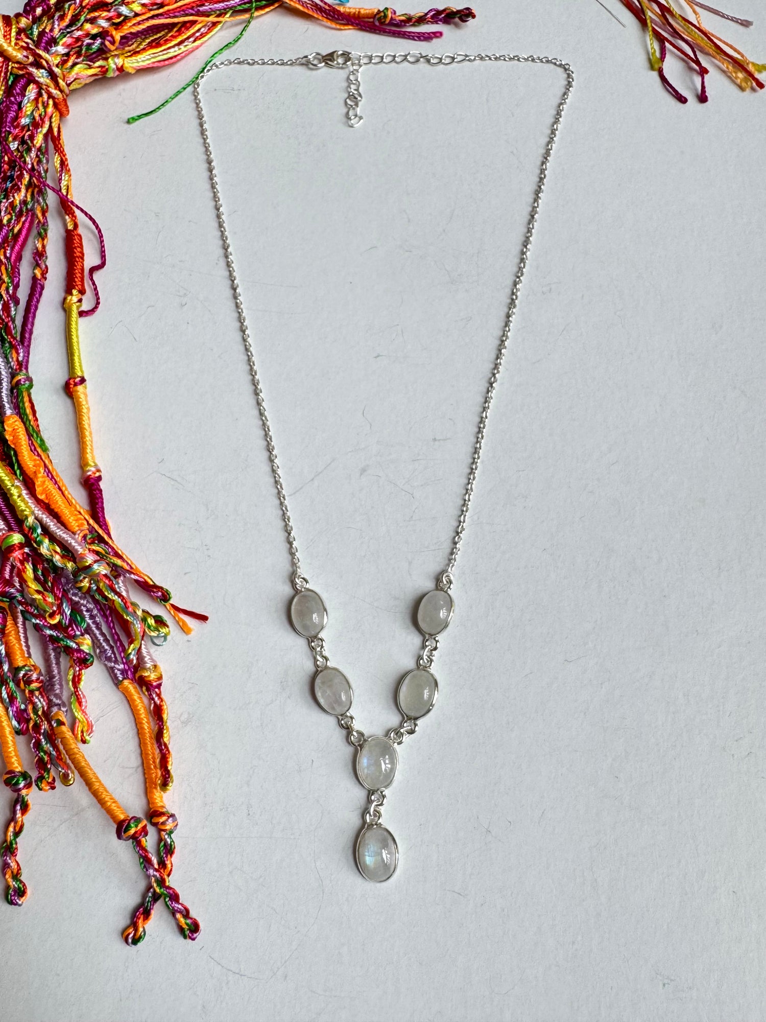 Collana in argento 925 con gocce di pietra luna arcobaleno.