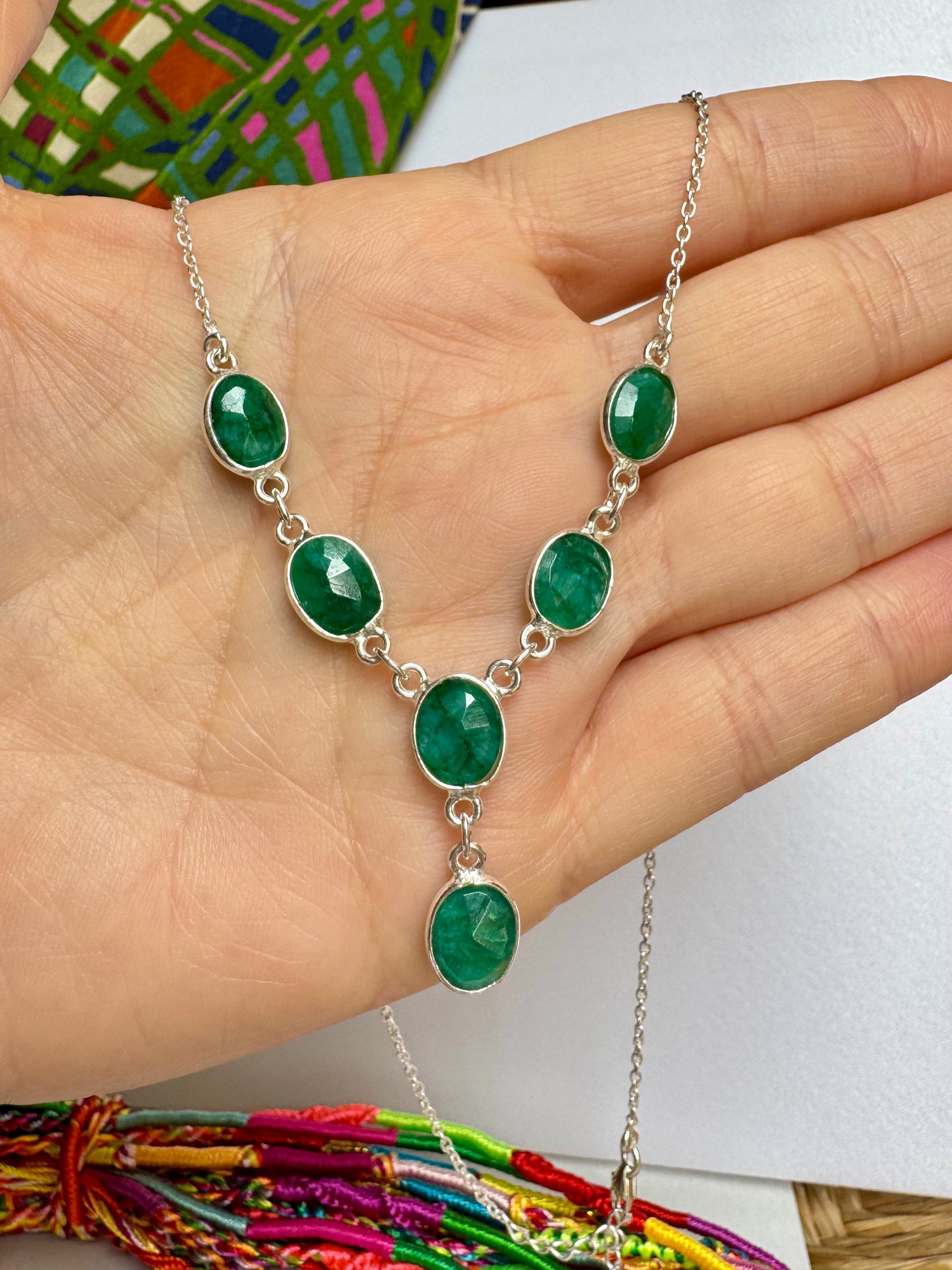 Collana in argento 925 con gocce di pietra radice di smeraldo.