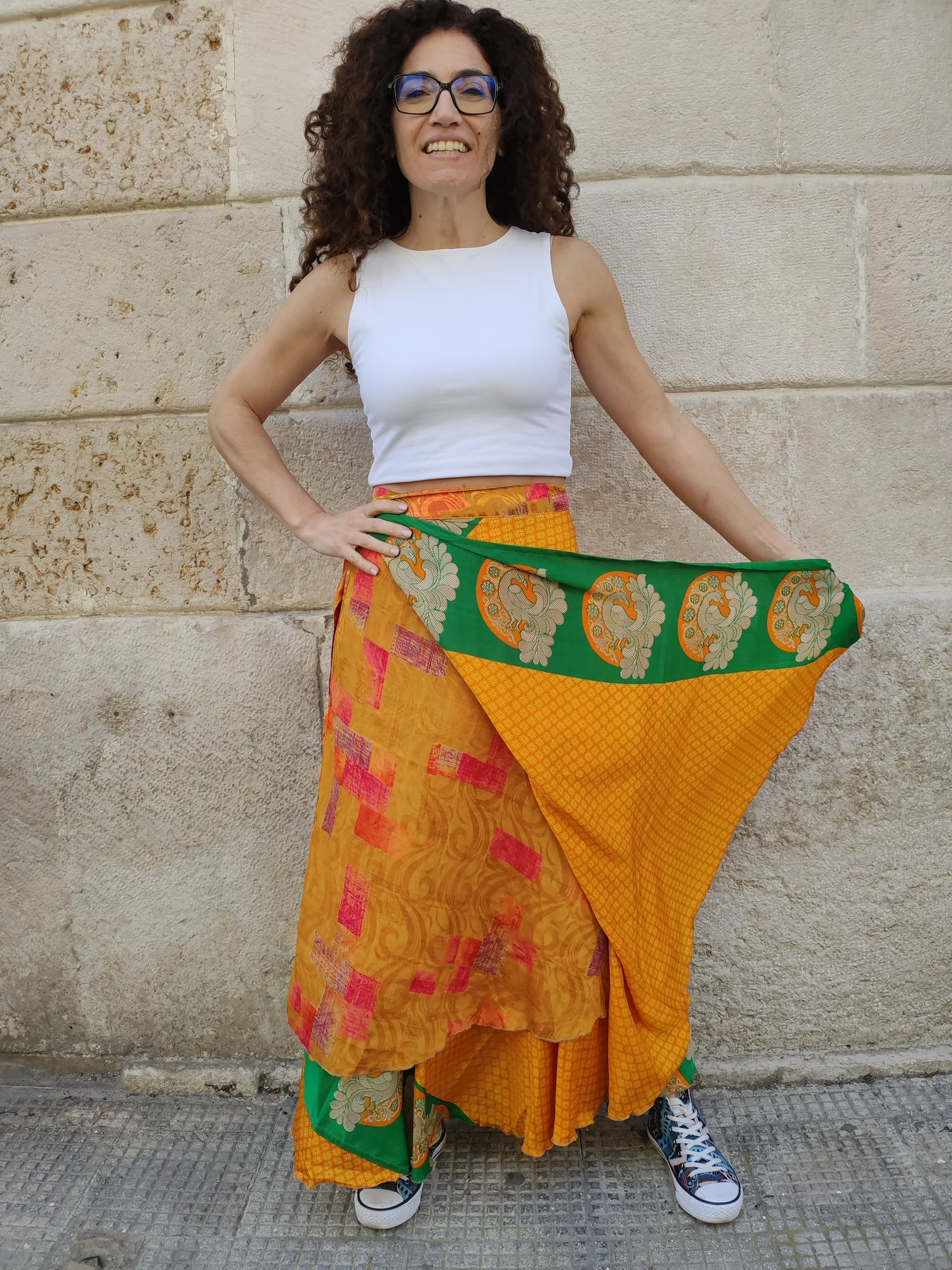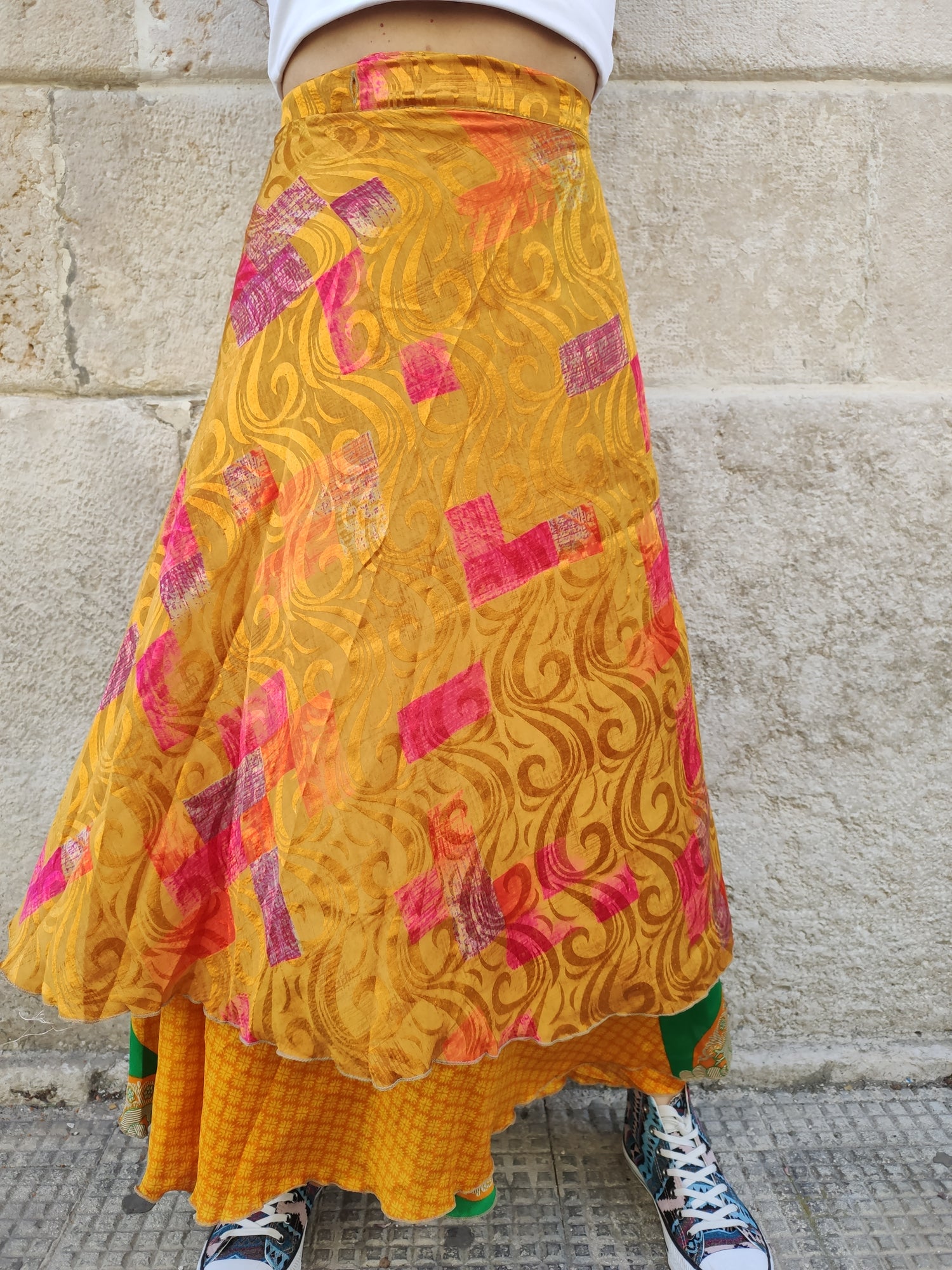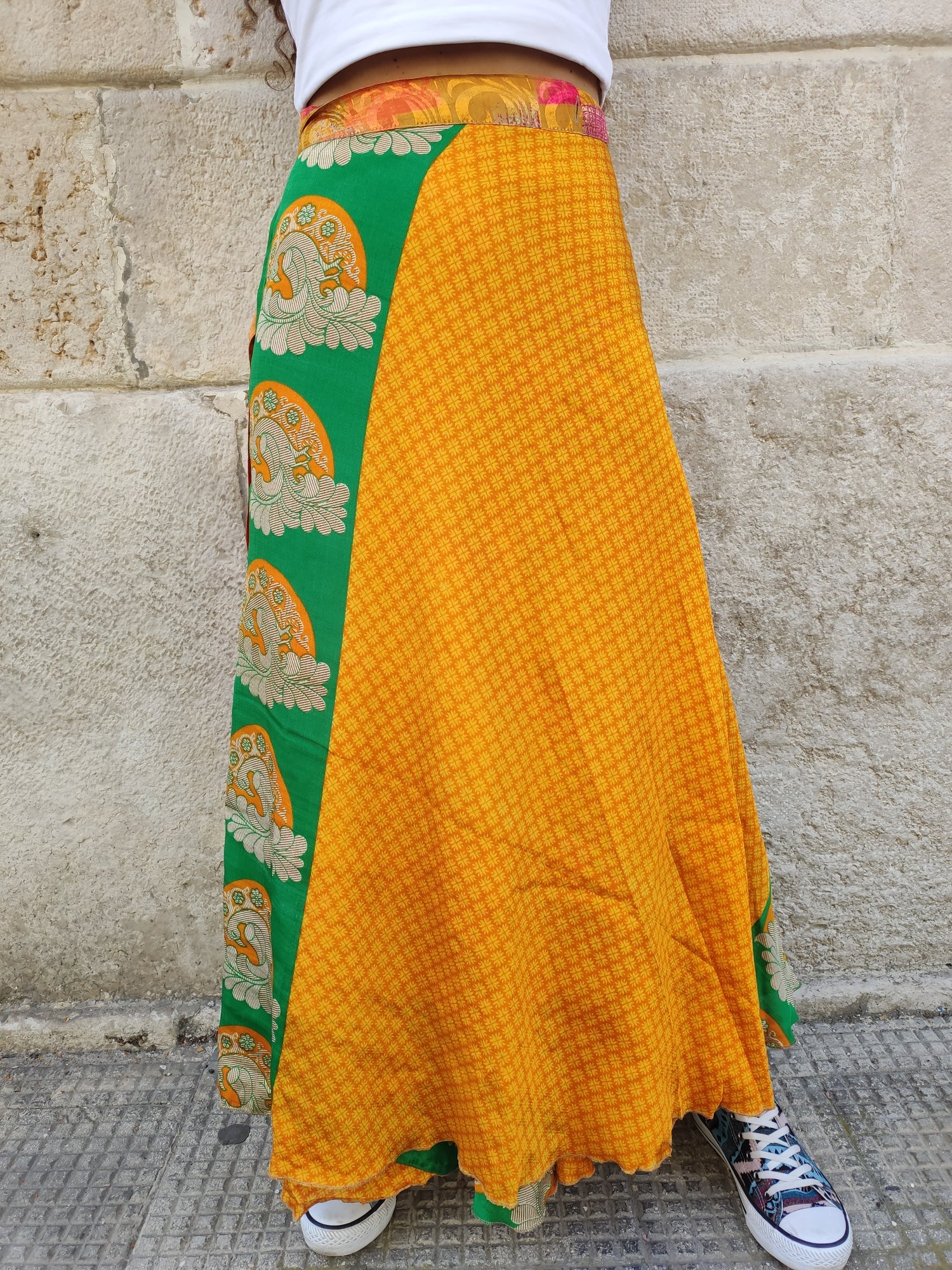 Gonna portafoglio in stile gypsy fatta a mano con tessuti sari vintage.