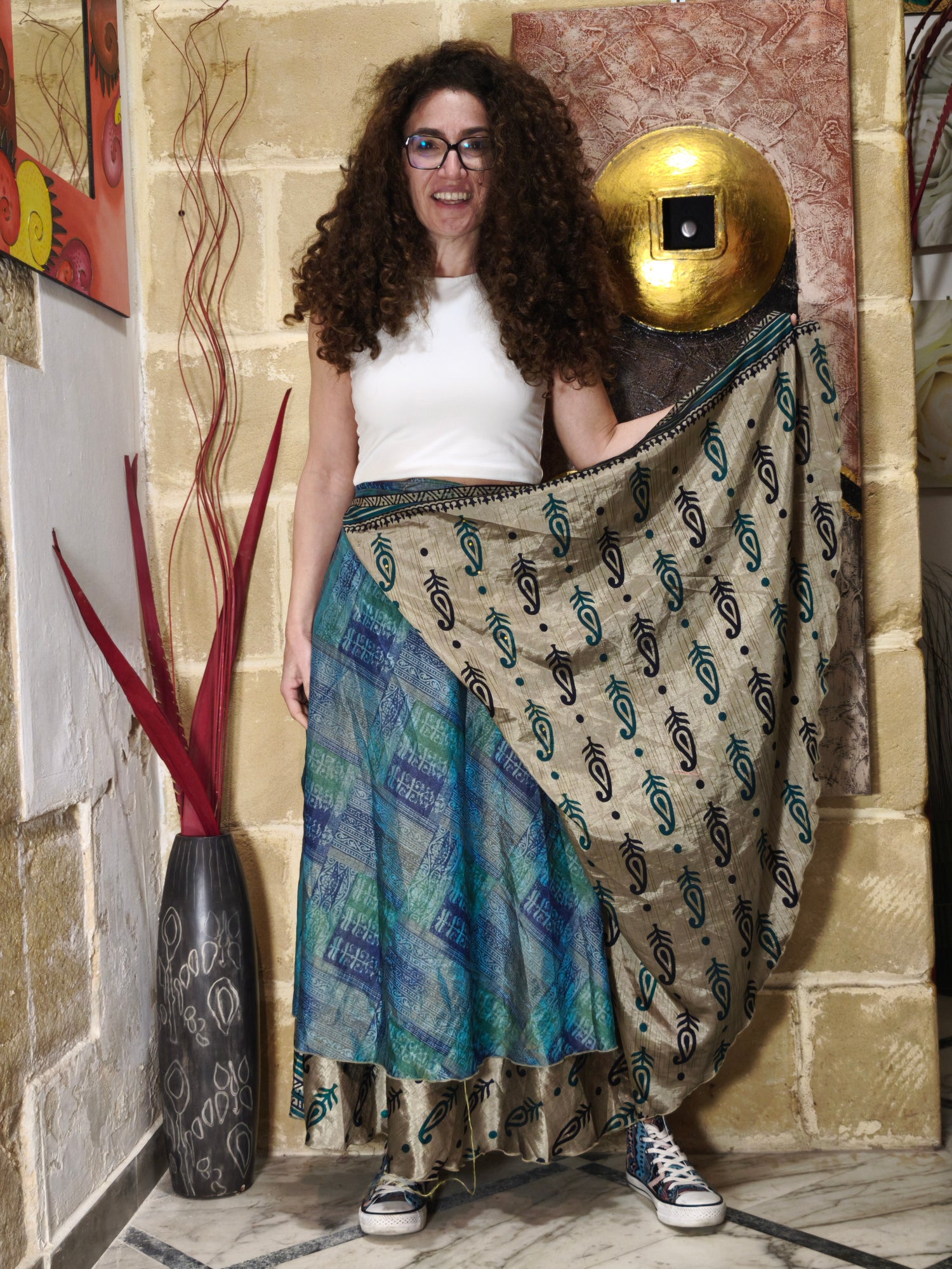 Gonna portafoglio in stile gypsy fatta a mano con tessuti sari vintage.