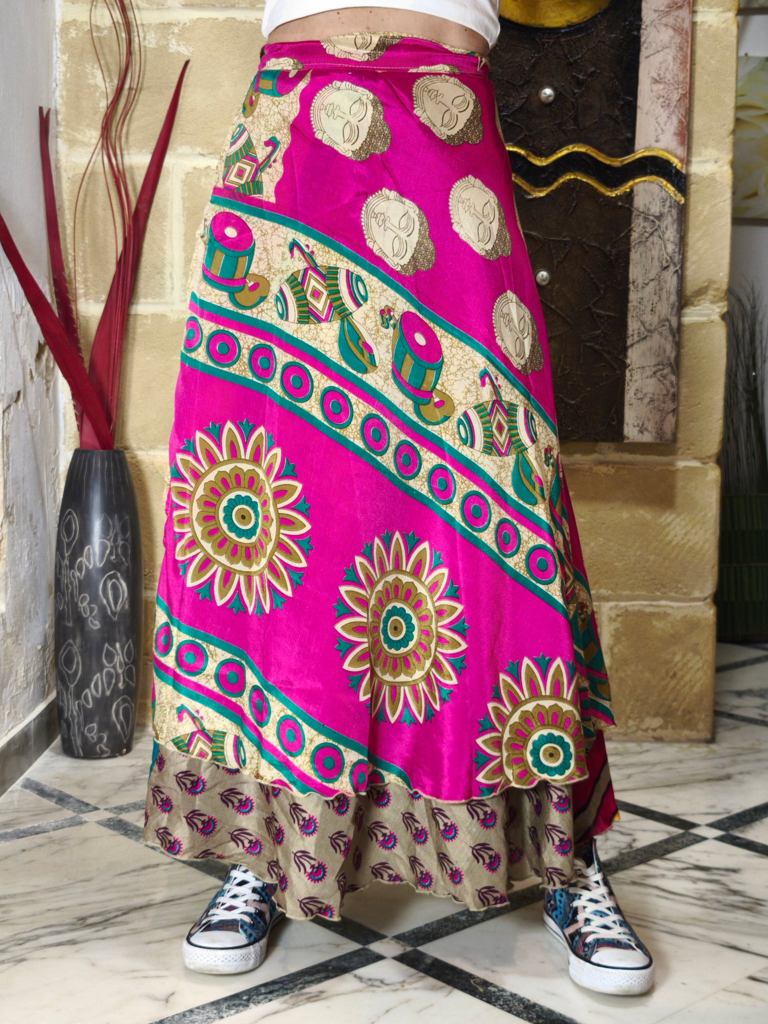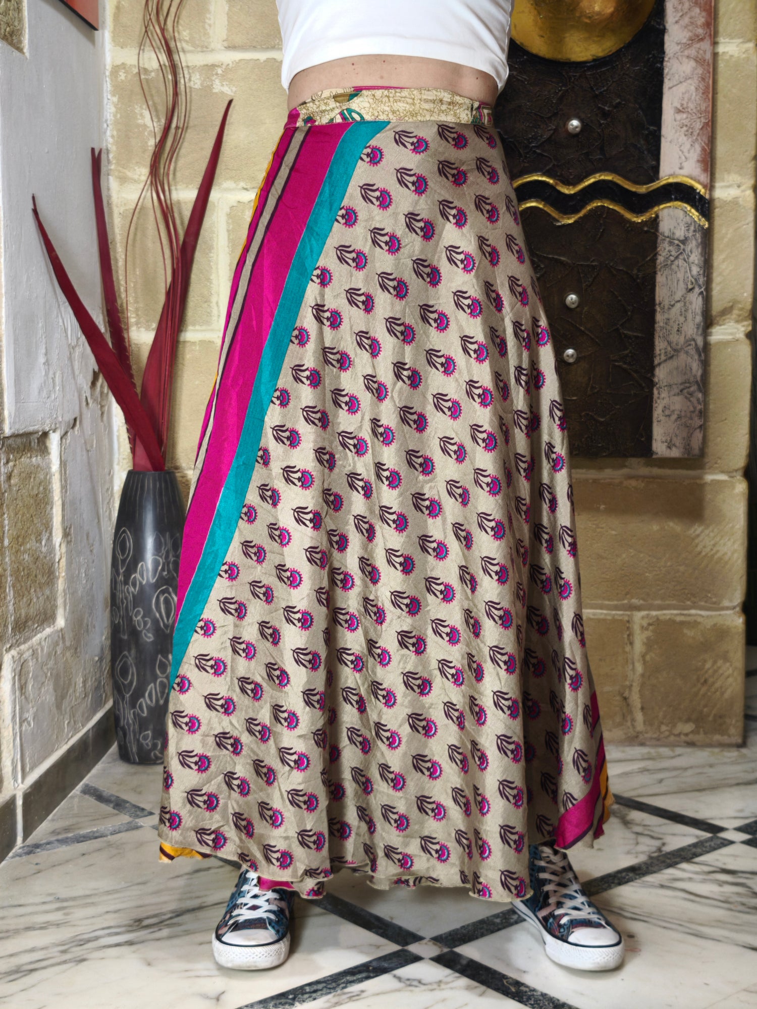 Gonna portafoglio in stile gypsy fatta a mano con tessuti sari vintage.