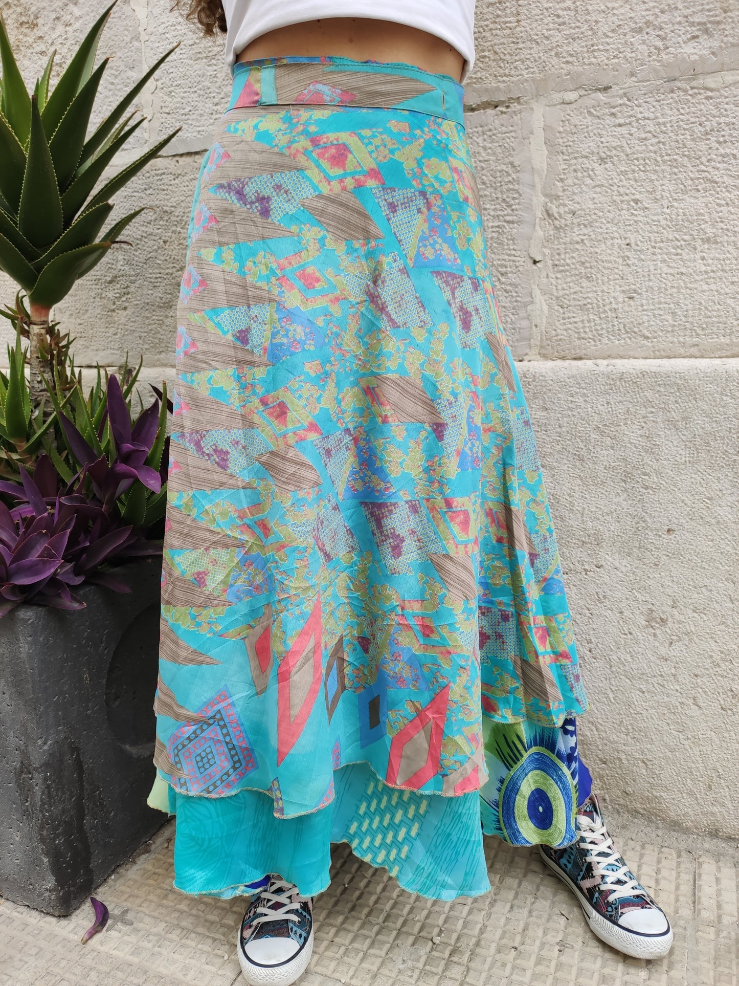 Gonna portafoglio in stile gypsy fatta a mano con tessuti sari vintage.