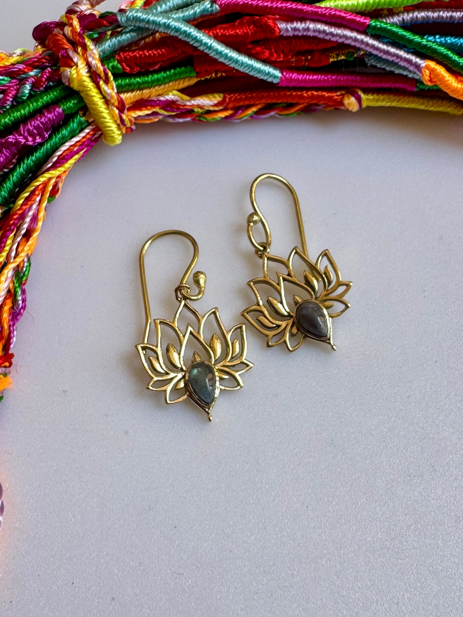 Orecchini in stile boho in ottone anallergico con inserto simil labradorite.
