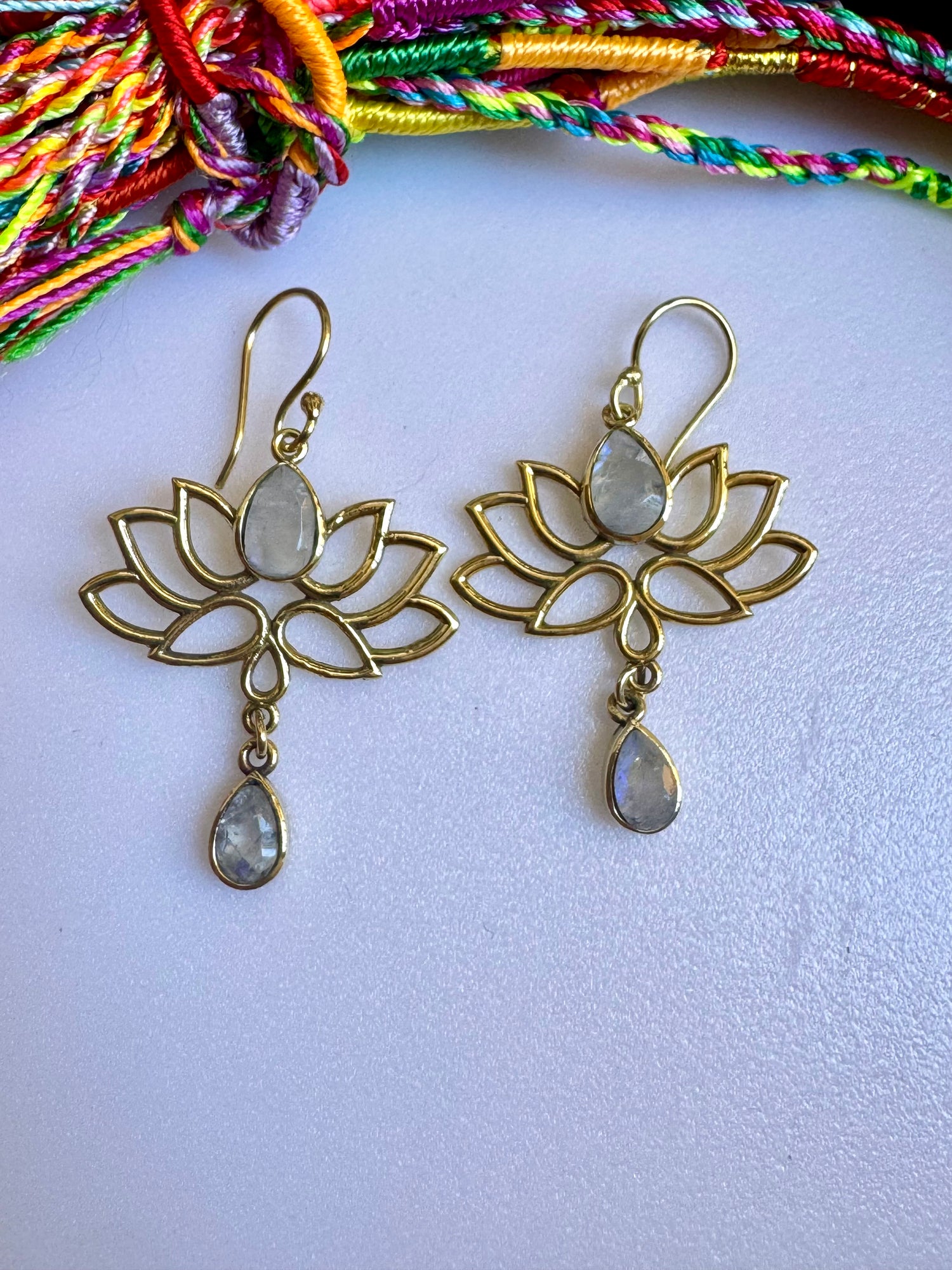 Orecchini in stile boho in ottone anallergico con inserto simil pietra di luna.