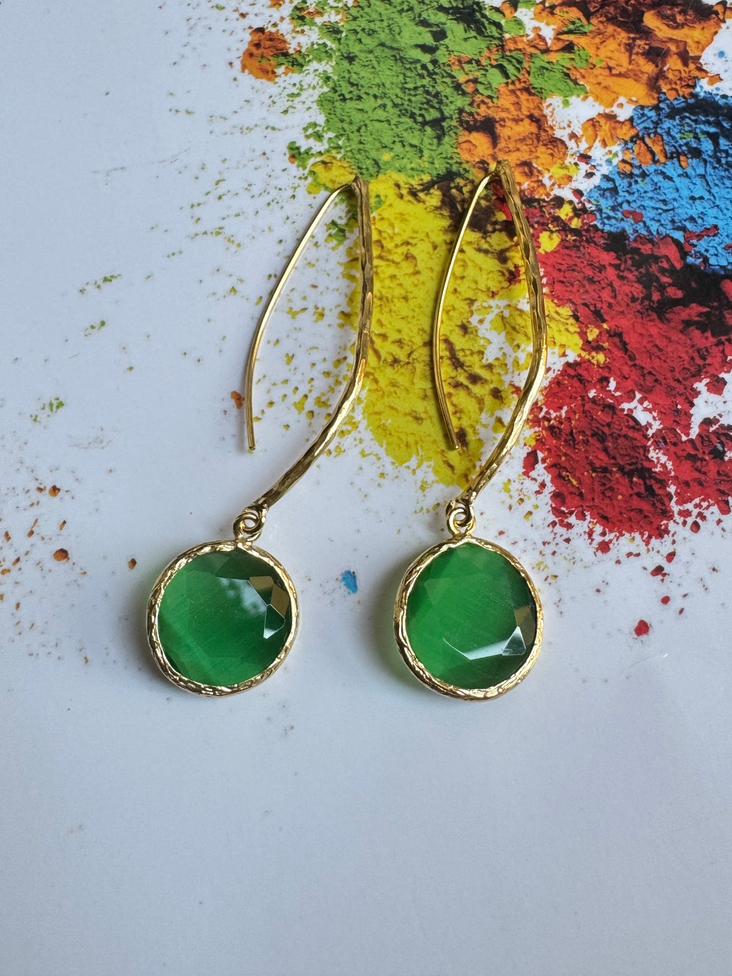 Orecchini in ottone anallergico con pietra occhio di gatto. Nichel free. Lunghezza 3,5cm.