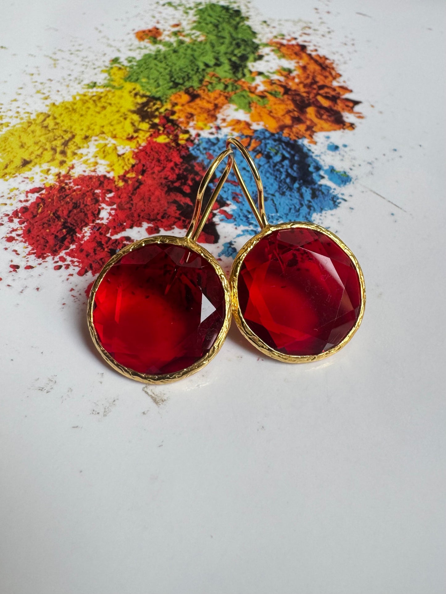 Orecchini in ottone anallergico con pietra occhio di gatto. Lunghezza 3,5cm. Diametro pietra 2cm.